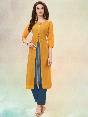 AKS Women Mustard Yellow Printed A-Line Kurta