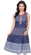 (Sleeves are attached inside the kurti) Long Blue and white printed cotton Frock style kurti with very big flare can be use as casual as well as semi party wear